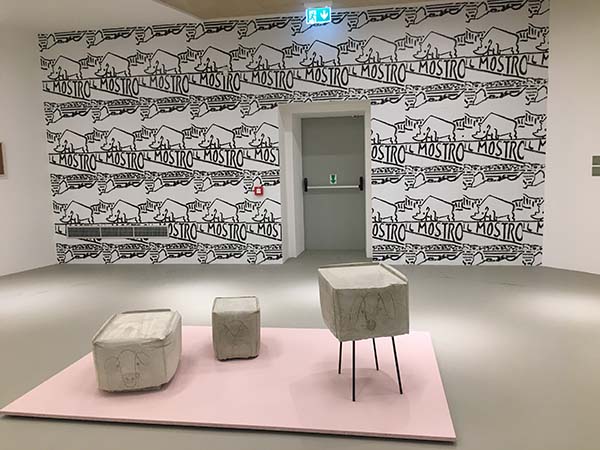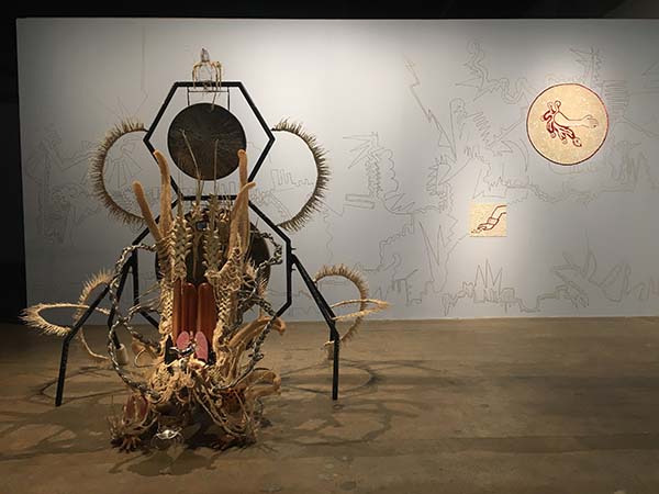 瓜達盧佩.馬拉維拉的雕塑系列「疾病發射器」於2023年光州雙年展「柔弱似水」光州雙年展展廳展場一景