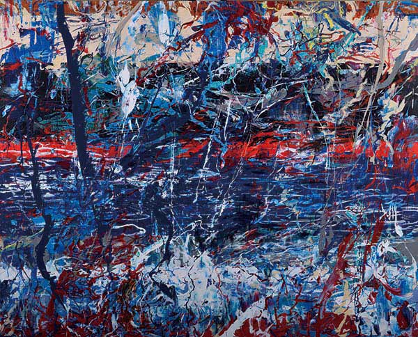 問:在一般印象中,抽象藝術常強調直觀、直覺的情感表達。可是妳的抽象作品如〈拉阿魯哇族的行動〉、〈應對—達悟族〉均有具體的命名。妳是否嘗試透過畫布傳遞更複雜的敘事?妳又是從怎樣的角度以抽象藝術創作與原住民文化相關的作品?