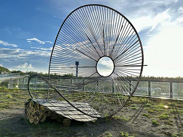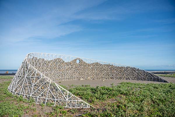 石頭、沙、鋼筋、漆、鐵網 直徑15m、高度3m