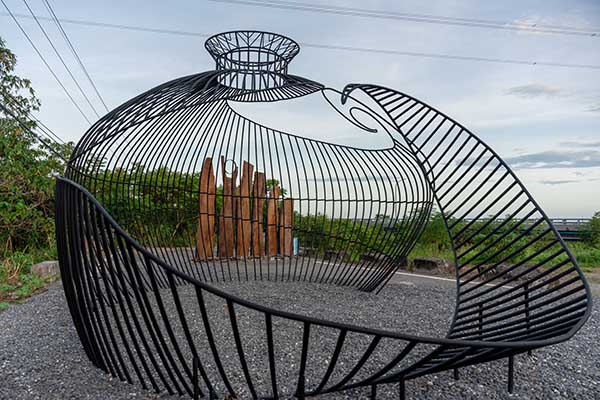 林彥含 晒海 一分圓鐵、手織布、複合媒材 400×300×90cm