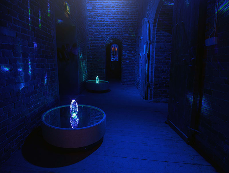 艾米莉亞.史卡努利特(Emilija Škarnulyt)的〈低氧〉從波羅的海的「異常現象」汲取靈感,是對滅絕、未來考古學和時間的深層思考,試圖推測與深海採礦和海洋測繪相關的當代科學條件和技術。作品隱身在瓦利島的歷史建築中,置身猶如洞穴般的暗室觀看大尺幅的影像,更令人感到奇幻莫測,其別有洞天的空間規畫帶來觀賞的驚喜體驗。
