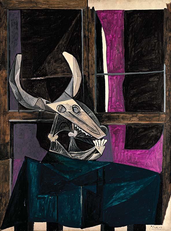 畢卡索1942年4月5日作品〈有公牛頭骨的靜物〉