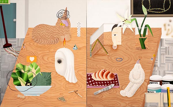 李美周 Table of the day_3、4 2023 壓克力畫布100×80cm×2