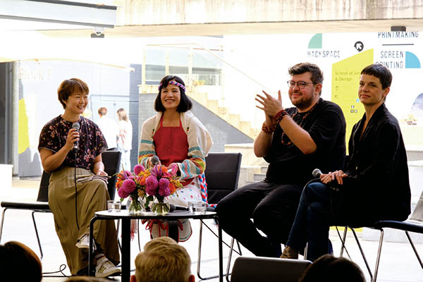 第24屆雪梨雙年展開幕週「台灣焦點活動」,由宜德思.盧信(左2)、第24屆雪梨雙年展共同藝術總監康喆明(右2)與藝術顧問薇薇安.齊赫爾(右1)進行藝術座談。