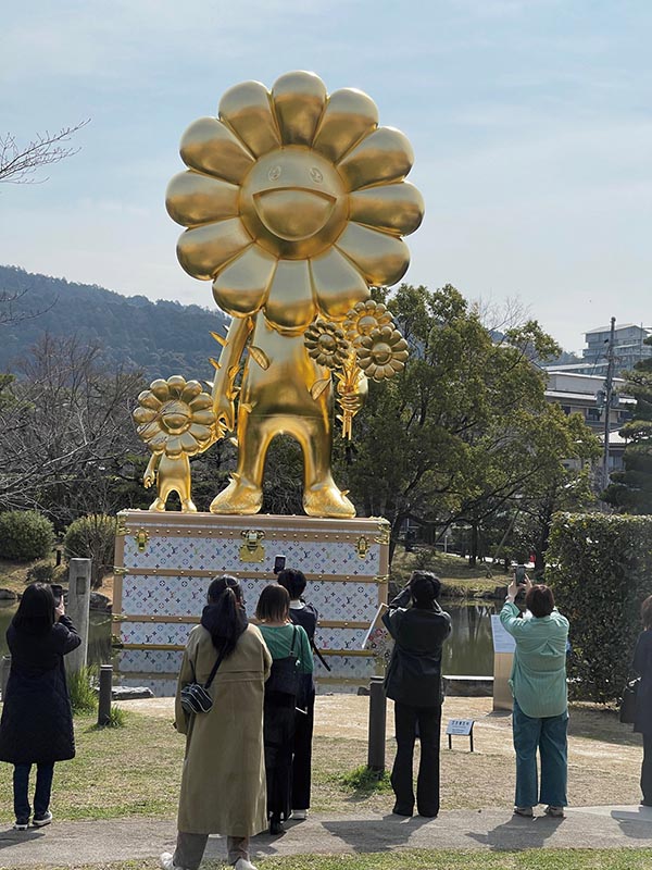 京都京瓷美術館戶外展出的村上隆〈花親子〉雕塑