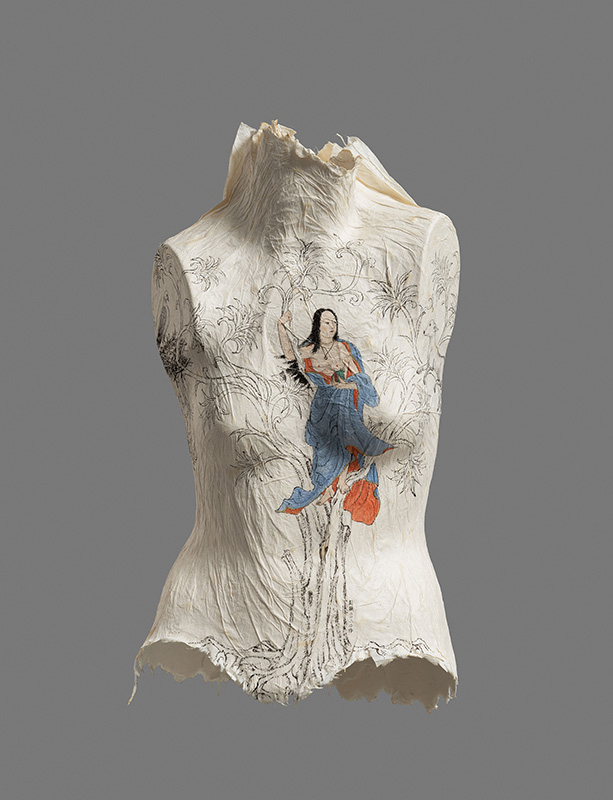 彭薇生於成都,父親是著名水墨畫家彭先誠,然其創作有別於傳統水墨,凡入眼者皆能入畫——畫其所愛,是她和世俗的對抗。她說逛商店和逛博物館她都喜歡,她畫石頭,畫繡履,從出土文物中獲得靈感,畫起漢服;她以絹鞋和人體模型為畫布,將水墨從平面轉向立體。畫盡山水,她便畫建築,於畫中的院落、房間、迴廊、塔的層層遞進中說故事,又從繪畫轉到動畫敘事,融合現實與夢境、傳說與經驗,勾勒源自女性經歷複雜而難以說清的變遷。畫畫和述說使她得以超脫,藉傳遞經驗引起共情,療癒眾生也療癒自己。
