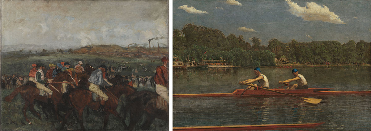 賽馬、帆船賽、網球和擊劍是混合運動與紳士社交的運動,許多印象派畫家都從這些運動汲取創作主題。印象派畫家中有不少本身也經常熱中於運動,像是費赫迪南.蓋爾德里(Ferdinand Gueldry)、托馬斯.艾金斯(Thomas Eakins)都以親身經驗來畫划船運動,相同的姿勢、服裝有助於表明節奏的完美協調等細節。