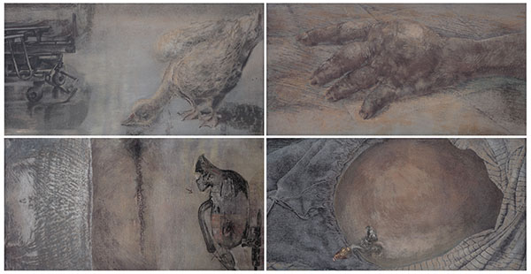 版畫類第2名 盧芷苡 腫Swelling 38×74.5cm(4件) 2024 複合版畫(網版絹印、膠版油印、手上彩)1/1
