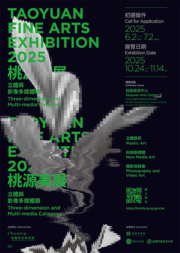 桃園市立美術館鼓勵具有傳承與創新精神的美術創作,培育藝術人才,帶動國內藝文發展,舉辦「2025桃源美展」徵件。本次徵件類別為「立體造形類」、「攝影與錄像類」及「科技新媒體類」,凡具中華民國國籍或持中華民國居留證之個人,團體參賽須指定一名為代表人,作品須為在2022年(含)以後之創作,且不得有抄襲、偽冒、臨摹、代為題字、冒名頂替等違反著作權法及相關法律規定的作品,或曾在公開徵件比賽(學校除外)中得獎者,不限參賽類別皆可報名,唯每類限送一件。