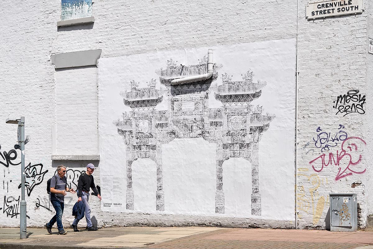 展覽場地涵蓋藍衣藝術中心、唐人街松園(Pine Court)、利物浦中央圖書館(Central Library)、Black-E藝術中心(The Black-E)、FACT當代藝術中心(FACT Liverpool)、開眼畫廊(Open Eye Gallery)、利物浦大教堂(Liverpool Cathedral)以及泰德利物浦美術館與英國皇家建築師學會(Tate Liverpool + RIBA North)等十八個空間,從知名美術館到社區藥局、服飾店、公共廣場,甚至日常行走的人行道,空間選擇本身即構成對城市肌理的考古──這些承載奴隸貿易、工業革命與離散社群痕跡的場域,不僅成為藝術家重構歷史敘事的實驗室,也讓藝術真正走進城市日常,貼近所有人的生活。