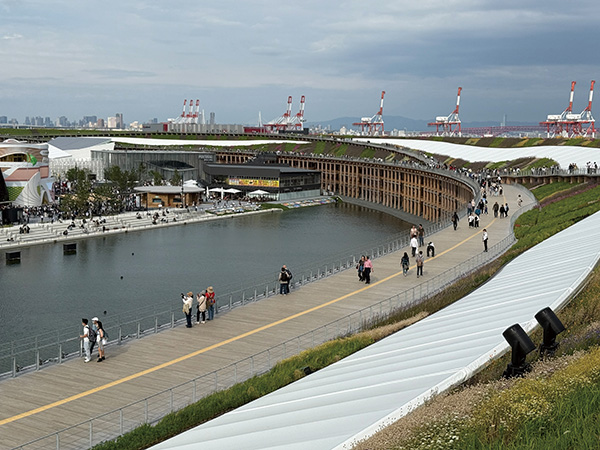 出自藤本壯介之手,面對大阪灣圍繞著夢洲人工島的大屋根環圈。