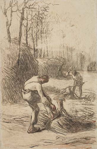 米勒 伐木工 約1850 黑色粉筆、水彩紙本 46.9×30.8cm 愛丁堡蘇格蘭國家藝廊藏