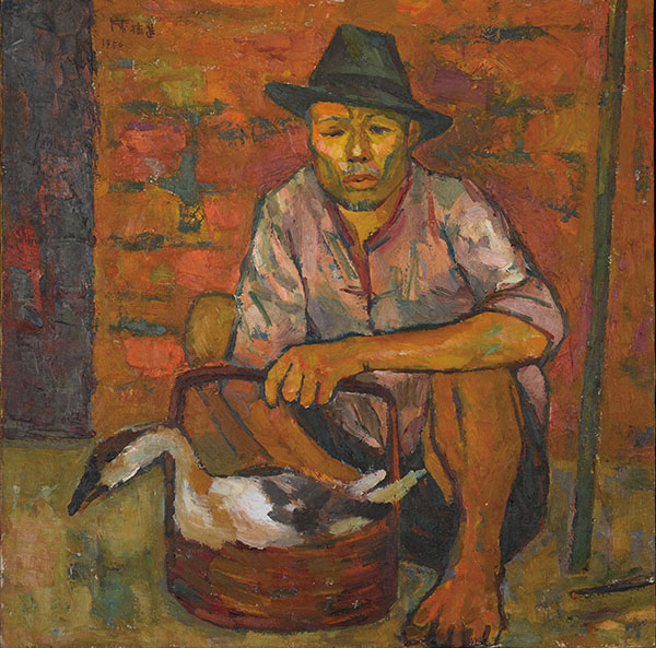 史博館展出修護後的席德進1956年作品〈賣鵝者〉。