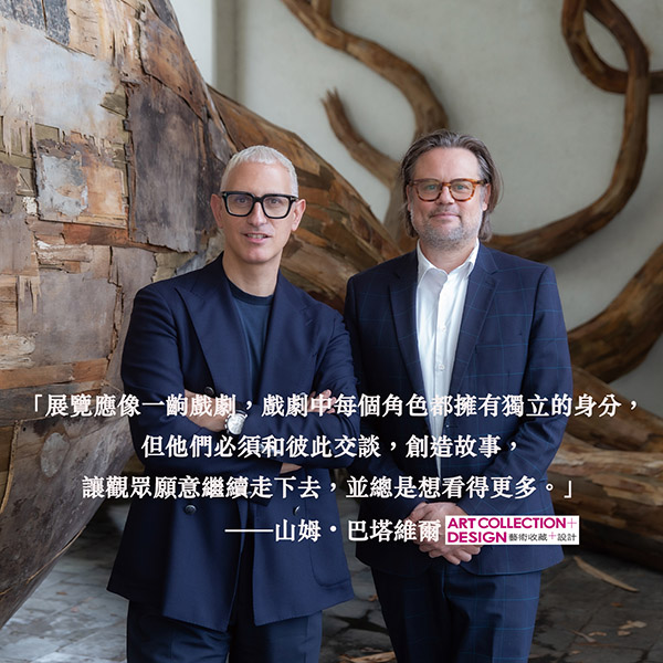 第14屆台北雙年展於2025年11月1日揭開序幕,以「地平線上的低吟」(Whispers on the Horizon)為題,探討「思慕」(yearning)這一存在於個人與集體、指向過去亦牽動未來、跨越時空的情感狀態,它是灼燒於心的深層需求,驅動著人類的行動、記憶與想像,卻又常隱身於日常之中。展覽匯聚來自全球37個城市的72位藝術家,展出約150件作品,包含34件全新委託創作與現地製作,部分北美館館藏也交織其中,展期至2026年3月29日。本期《藝術收藏+設計》邀請本屆雙年展策展人、亦為柏林漢堡車站國家當代藝術美術館(Hamburger Bahnhof–Nationalgalerie der Gegenwart)雙館長的山姆.巴塔維爾(Sam Bardaouil)和提爾.法爾拉特(Till Fellrath),分享他們對策展、空間、藝術史、藝術家與美術館營運的思考與實踐。