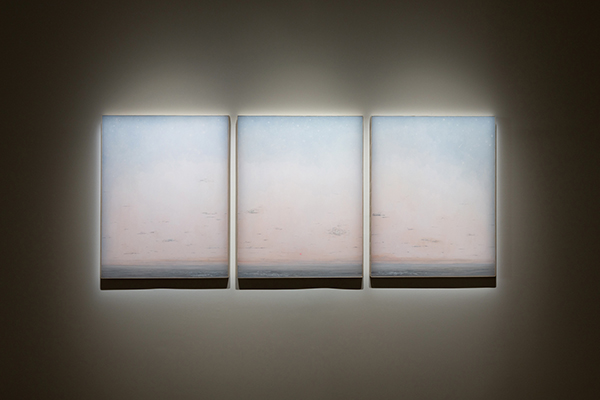 〈美唯真〉這件作品並非從既定的敘事出發,而是由感覺的累積孕育而成——記憶的片段、氣氛的微妙轉換、情緒狀態的浮沉。那片粉色天空成為一個入口,一道視覺與情感交織的地平線,讓我藉以思考存在、距離,以及那些形塑身分的細微流動。這件三聯畫不提供答案,而是留下痕跡:試圖轉譯某些記憶,即便是最輕柔的記憶,也持續在我們內心迴響,悄然改變事物的走向,它體現了「地平線上的低吟」的精神:它悄然逼近、轉化,並喚起既親密又遼闊的內在傾聽。