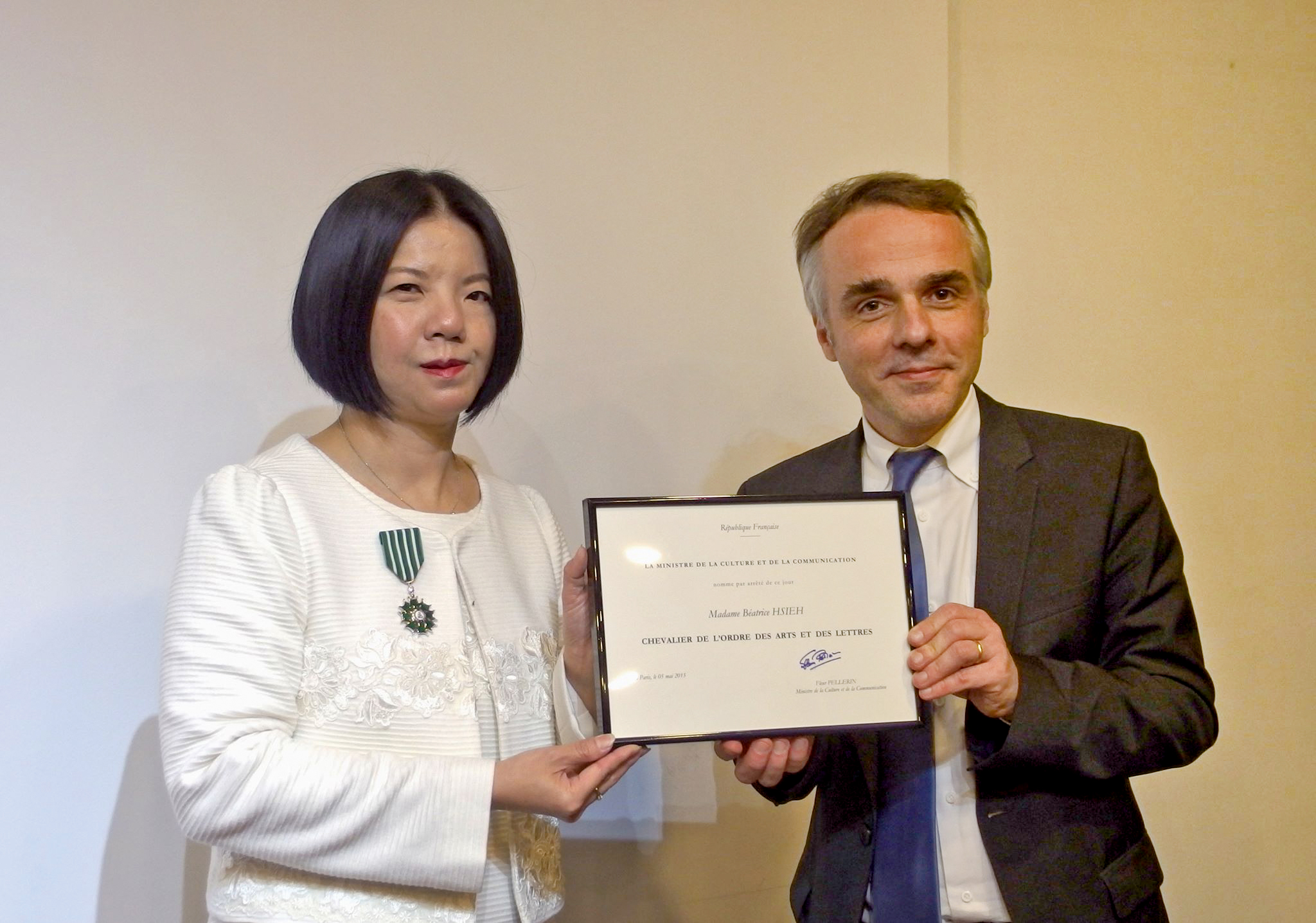 謝佩霓獲法國藝術暨文化騎士勳章