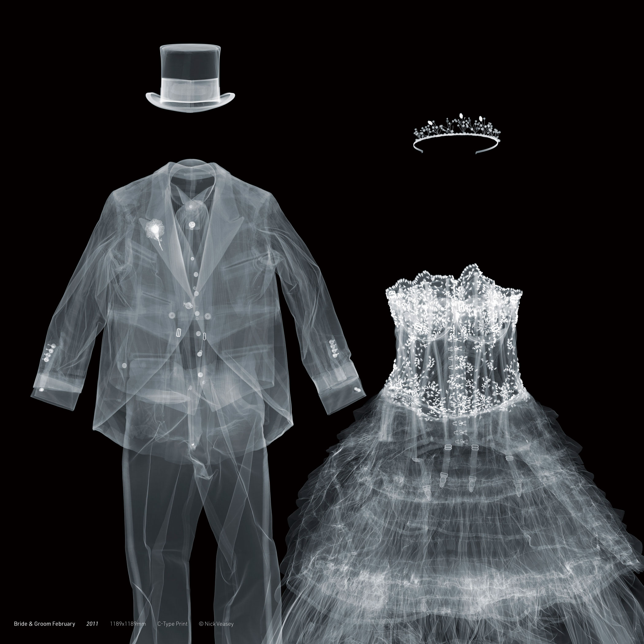 在信燕興台北自宅的客廳,陳列著出生於1962年的英國藝術家尼克.維西(Nick Veasey)創作於2011年的作品〈新娘和新郎〉,這件作品也是他的第一件收藏。尼克.維西是一位專注以X光成像形式創作的藝術家,在這件作品裡拍攝的是婚禮中新人所穿的禮服:沒有主角的人體,只保留了服裝和配件的細節,提供給觀者許多的想像空間。「對我來說,〈新娘和新郎〉這件作品具備了獨特的形式,這種切入點能夠帶給我新的啟發。」信燕興認為,「婚禮」的儀式象徵著伴侶的結合,畫面中的新郎和新娘雖然沒有手,但從他們的姿態來看,就好像兩個人牽著手,準備一同迎向未來的人生:「結婚意味著一個人與人之間不會後悔的約定,這件作品本身的內容就很吸引我;再更深入一點來說,藝術家能夠把衣服這個看似簡單的物件,拍攝得這麼細膩,這樣的手法是很動人的。我還記得當時看到這件作品,畫廊的工作人員告訴我說,藝術家的創作理念是以衣服象徵婚禮的種種細節——有時候繁瑣的準備工作和中間產生的摩擦,很容易使新人忘記原本期待結婚的意義。然而對我來說,藝術作品有趣的地方在於,觀者的詮釋並不一定會與創作者一致;甚至,即便是同件作品,每天看也都會有不一樣的感覺。」他笑道:「比方如果某天和伴侶吵架了,回家看到〈新娘和新郎〉,感覺就一定不會和初次見到作品時一樣。」