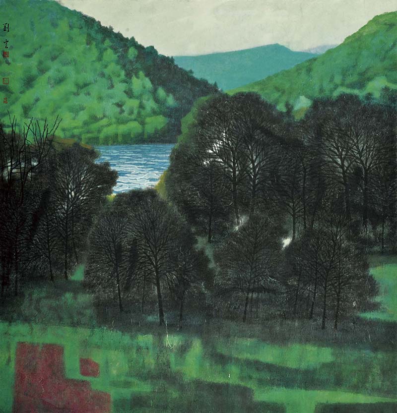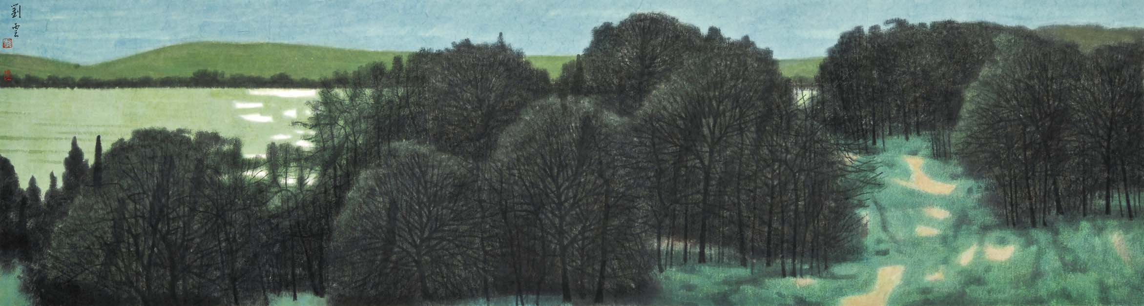 劉雲原來從事油畫創作,並在油畫領域做出了成績。他轉而畫水墨山水,從狹隘的專業分工來說是改了行,其實,各門藝術之間本來是互通的,劉雲創作水墨山水應該是他藝術創作的自然延伸。我想,劉雲在油畫實踐中找到了與水墨相契合的地方,感覺到他在水墨中有施展自己才能的空間,才決定這樣做的。當然,他在油畫創作積累的經驗和取得的成果,有助於他對水墨山水的認識和理解。除此之外,他之所以在山水畫領域「出手不凡」,一是有傳統藝術的修養,二是深諳普遍的藝術創造原理。劉雲似乎沒有把「山水」和「風景」截然區別開;順便說起,在中國古代文獻中,也有把「山水」說作是「風景」的,兩個詞可以代替使用。劉雲看到了水墨「山水」和油畫「風景」的某些相似之處,那就是他們都要師造化、寫自然之美,同時借景抒情,表現自己面對自然的獨特感受。劉雲筆下的山水取景、布局,與傳統文人畫既有聯繫,又不完全相同,帶有明顯的「寫生」痕跡。也就是說,作者是從實景的基礎上加以藝術提煉,不是閉門造車憑想像畫出來的。說到寫生,有人以為那是西畫的專利,中國傳統山水畫是忌諱寫生的,這是一種誤解。中國古代山水畫論中同樣有「寫生」的說法,只是具體的方法與西畫不盡相同,更強調意取、意寫。20世紀以來一些山水畫家借用西畫寫生手法,補文人畫寫生之不足,在藝術上別開生面,其代表人物就是大家熟悉的李可染。劉雲的山水畫寫生介於文人畫和西畫之間,有意把實景(他看到的故鄉景色)加以提煉,納入自己的藝術結構之中。這樣,他幾乎是滿構圖的山水畫布局既避開了文人畫的套路,又與寫實油畫拉開了距離。