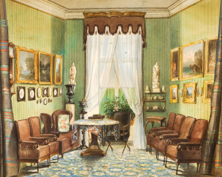 芬尼.馮.阿史坦位於霍爾市場的沙龍 Fanny Arnstein’s salon on Hoher Markt, beginning of 19th century. JMW, Inv. Nr. 15475