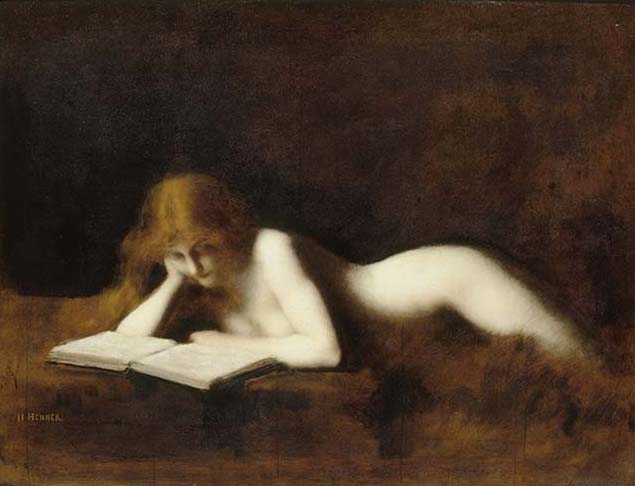 除了使用顏色的對比來烘托紅髮,埃內1883年的〈閱讀的女人〉將頭髮與背景的邊際模糊,讓模特兒俯臥其中,被紅髮的光澤與柔軟包圍。當時的散文作家亨利.胡瓊(Henry Roujon)認為在埃內的作品中可以看到:「光線投射在紅色火焰反射的頭髮上,並襯托出了她們膚色如綢緞般光滑的顏色。黃褐色的閃光,黃金的顏色,是最生動、最低調,也因此是最和諧,最美麗的顏色。美麗因此不拐彎抹角。」