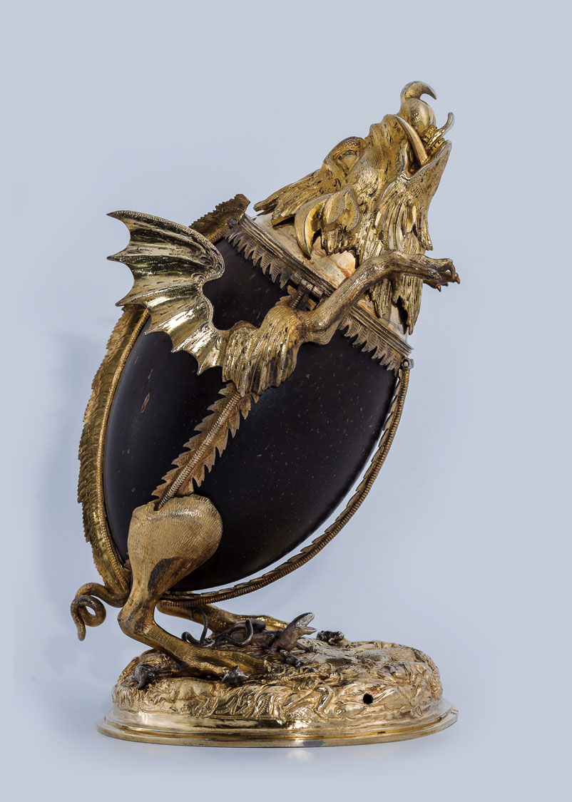 老卡斯珀.伯特米勒作品〈怪誕野豬杯〉 Caspar Beutmüller the Elder, Grotesque boar and coconut cup, Silver-gilt, coconut, 21×15×13cm, 1603-1609. Burg Eltz, Wierschem. Photo by Martin Jermann