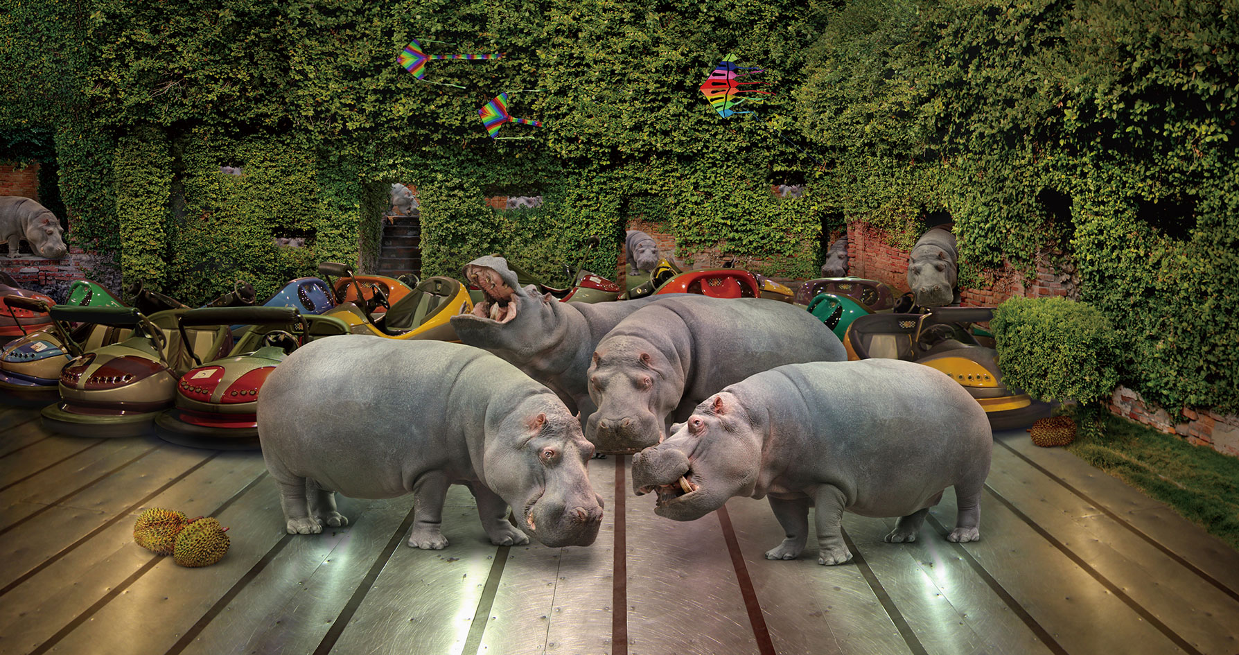 黃建樺 編碼者──自戀舞步與無間莊園 數位操控影像和數位攝影、金屬相紙、無酸鋁製背板裝裱 110x208cm 2015 圖版提供/加力畫廊)