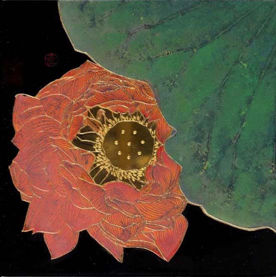 林彥良 朱荷 2017 漆板、金箔、金泥、雲母、色漆 18×18cm