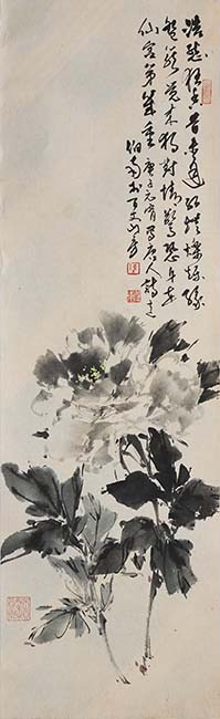 左|陳伯南 墨芍藥 2020 水墨 100×26cm