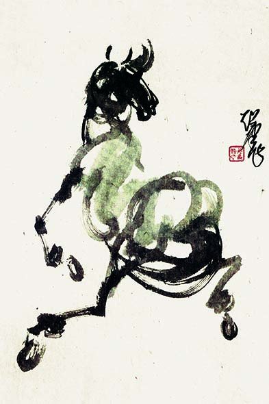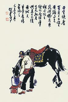 吳超群以此駿馬創作為主,如:〈饜足〉、〈古堡憶舊〉等,〈饜足〉便是他早年(1972年)描寫安平駿馬歇息飲食的景象。