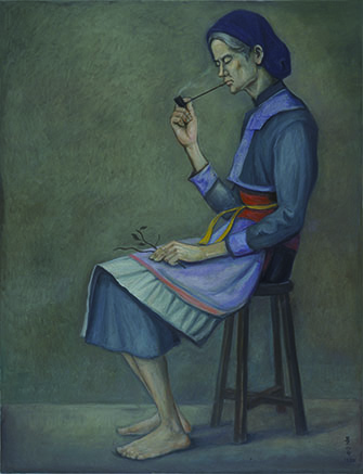 抽煙斗的老婦人 1990 油畫 77x62cm
