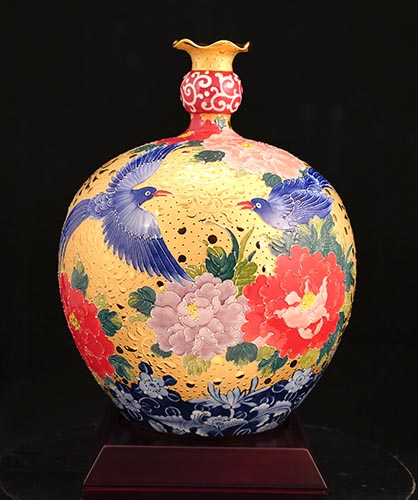 張美雲大師再次重現宮廷秘制法華彩,並將其繪製於瓷胎之上,風格細膩且華麗,獨樹一幟;凹凸深淺的法華線雕,加深了如意紋飾的豐富美感,玲瓏細膩;再施以釉下五彩工藝漸層染釉,色彩濃豔明亮、高貴華麗;最後更加上了現代獨特的雕金技法,金彩奪目,使法華彩瓷的極致美再上一層樓; 張美雲大師是將中國經典工藝:雕塑、法華、釉下五彩、青花以及雕金五大工藝結合一體的第一人,作品極具收藏空間,一件精品的價格可高達數十萬元以上。