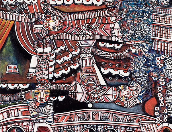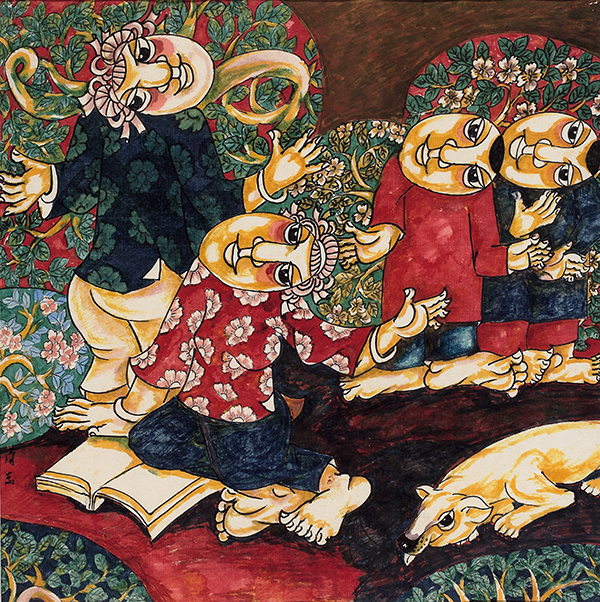 江漢東,1926年生於福建長汀,1948年渡海來臺。從臺北師範學校藝術科畢業之後,又向現代繪畫導師李仲生習畫,開啓了他對現代版畫的觀念與視野。李仲生曾形容他的畫作,是一種「追憶的心象」,自由飛翔於神祕、幻想、純真如童話一般心感所及的世界。